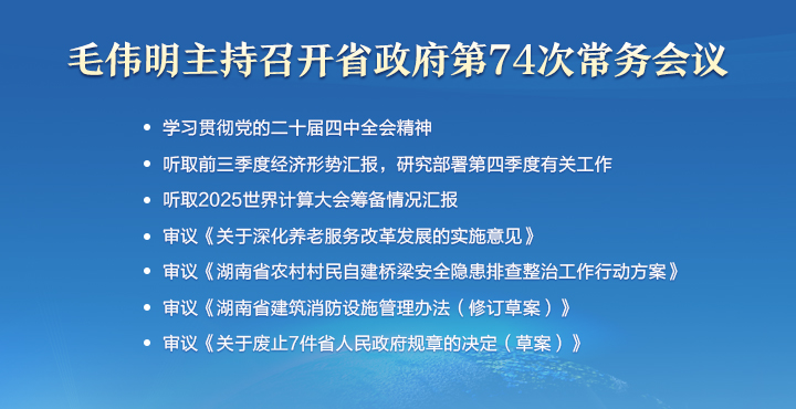 • 毛偉明主持省政府第74次常務(wù)會(huì)議 傳達(dá)學(xué)習(xí)黨的二十屆四中全會(huì)精神 分析前三季度經(jīng)...